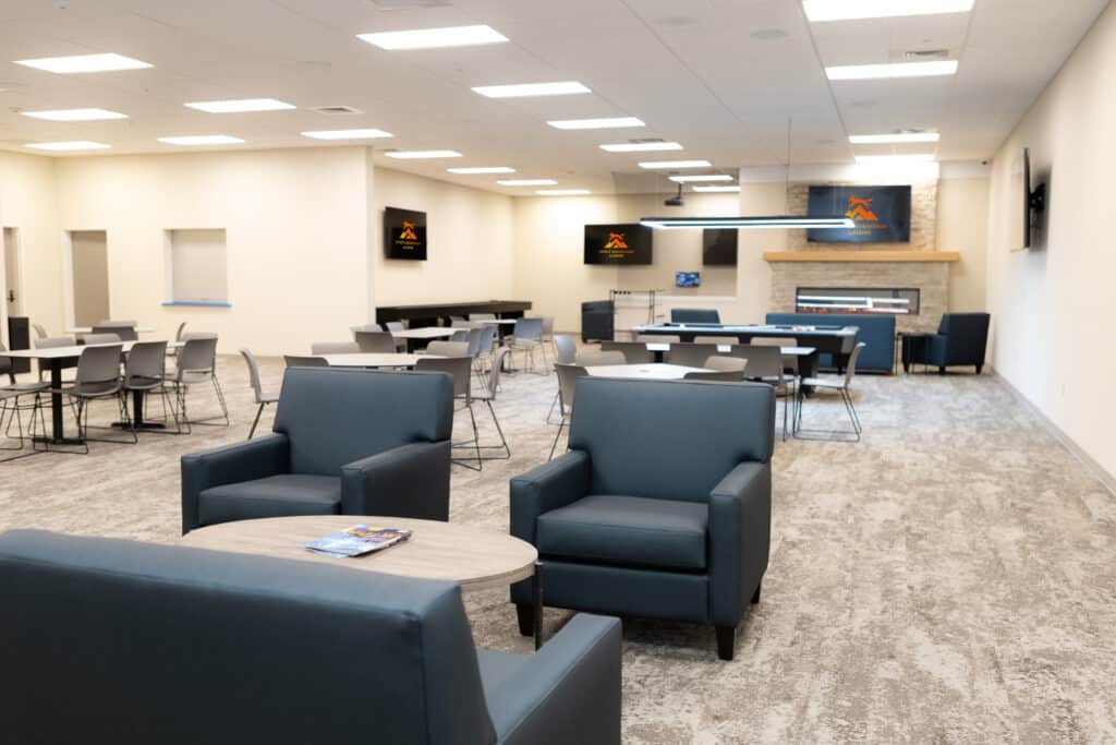 Clubhouse with games, vending machines, and a lounge area
